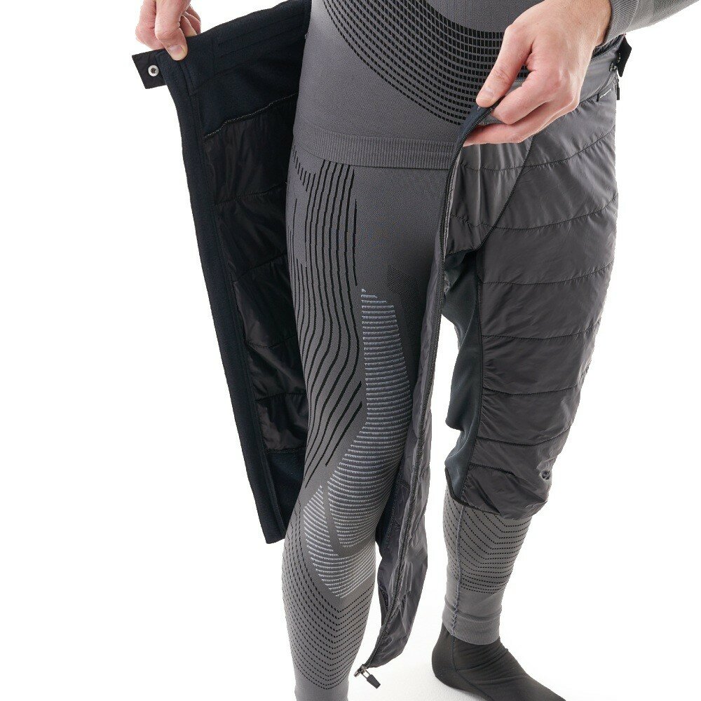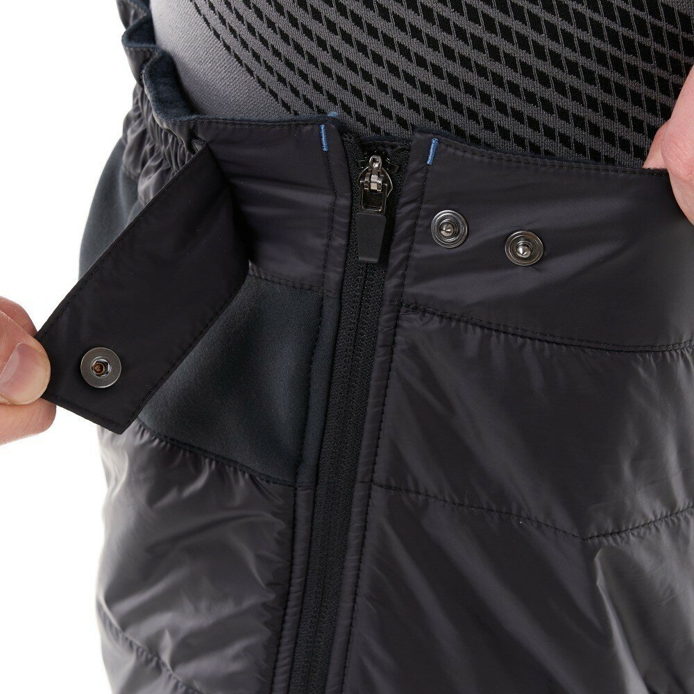 Пояс снабжен регулировкой, в задней части имеет завышенную анатомическую вставку для защиты поясницы от холода. Основная часть – непродуваемая плащевая ткань со слоем утеплителя плотностью 60 г/м². Поясничная, паховая часть и область за коленями – вставки из Колон Стрейч, плотного мягкого материала с отличными терморегуляционными свойствами, обеспечивающего быстрый отвод влаги.