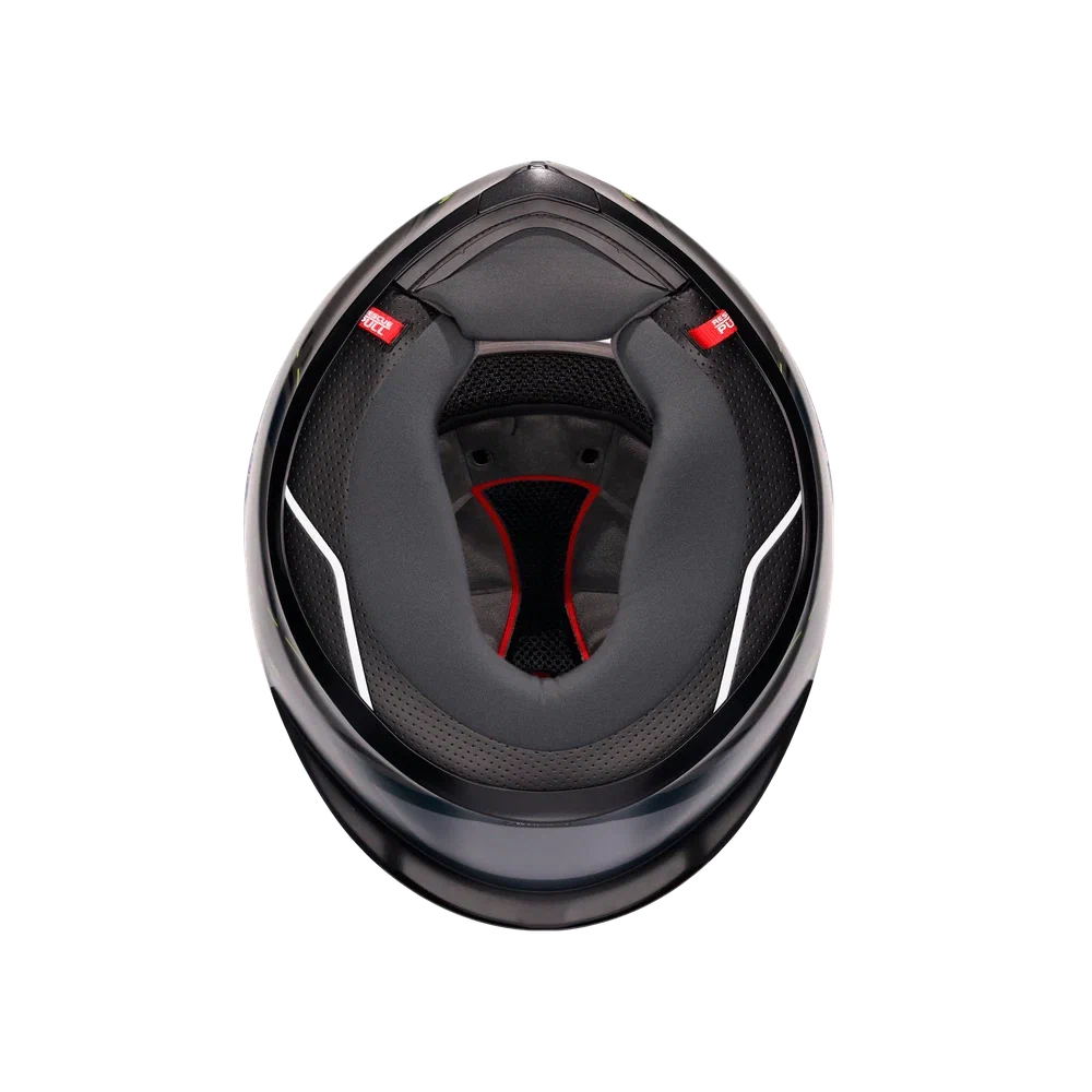 - Щечные прокладки: ткань Ritmo для облегчения одевания/снятия шлема, с скульной областью из ткани Shalimar для обеспечения устойчивости на высокой скорости