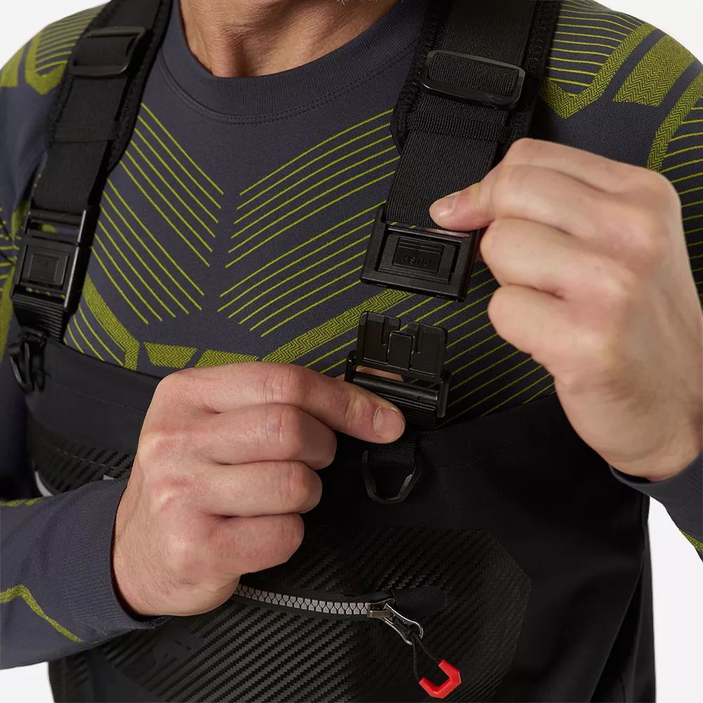 - Эластичные подтяжки и ремень на замке YKK позволяют регулировать посадку по фигуре.