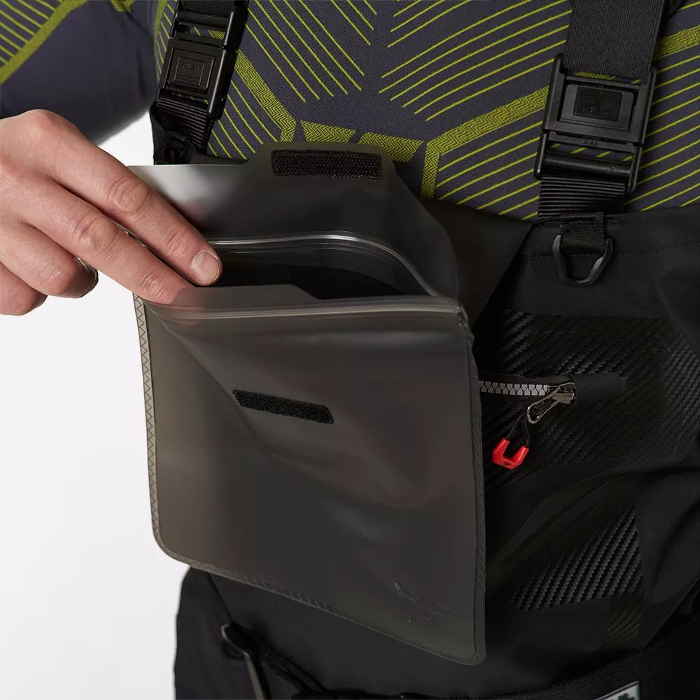 - Внешний накладной карман с молнией YKK AquaGuard для рыболовных аксессуаров.